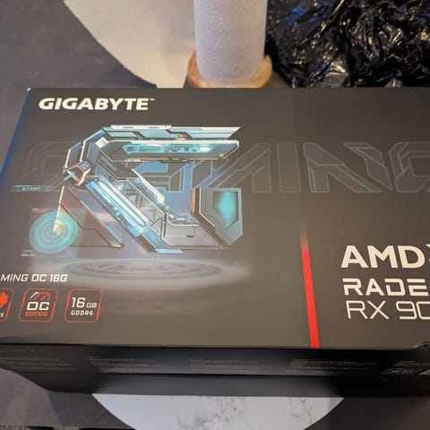 ASUS Prime AMD Radeon RX 9070 XT grafikkort med tre fläktar för kylning. Grafikkortet är designat för avancerad grafikprestanda och är utrustat med AMD:s Radeon RX 9070 XT GPU.