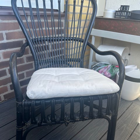 Rottingfåtölj med beige dyna