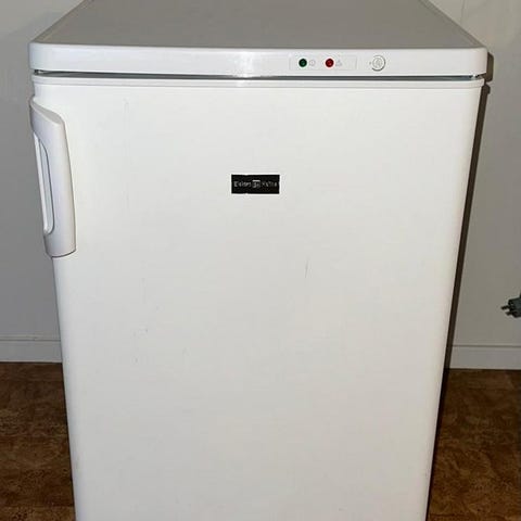 Frysskåp Aeg.Kvalitetsmärke med några år på nacken.Men funkar som det ska.Tyst och fint går det.Inga bulor på dörren.1.45högt och 0.6 brett