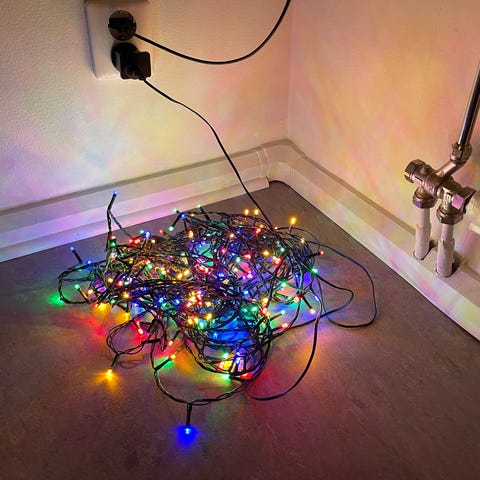 100 LED ljusslinga till utomhusbruk med adapter. Ljusslingan har varm-vitt sken med LED-belysning og IP44-klassificering, vilket gör den elegant til utomhus miljöer.