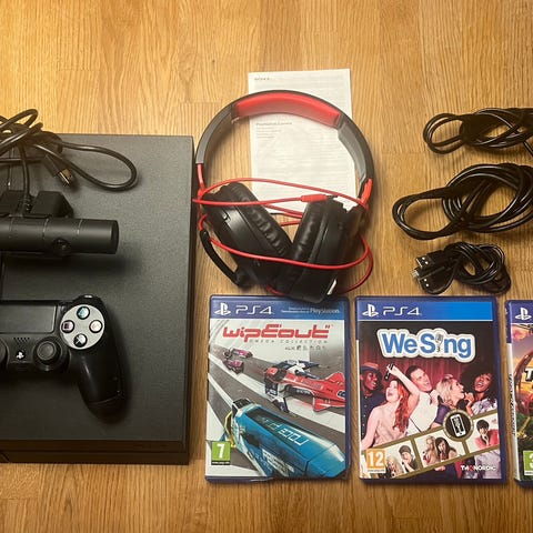 Säljer ett PlayStation 4-paket i fungerande skick. Perfekt för barn eller familj.