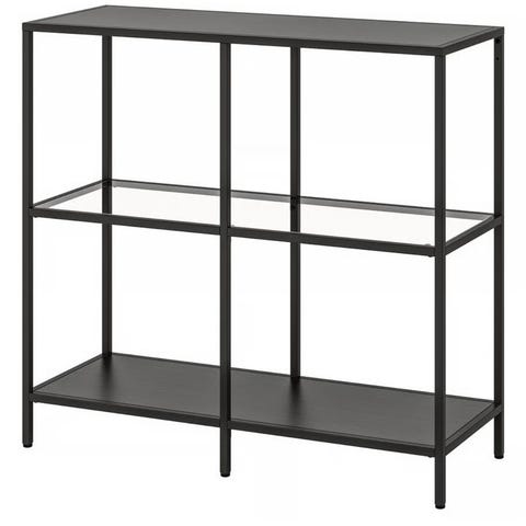 Sideboard/laptopbord i glas och vitfärgad metall.