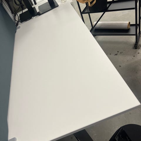 jag har 9 st skrivbord , Vitt höj- och sänkbart skrivbord med manuell vev. Levereras med grå insynsskydd. Lämplig för kontor eller hemmabruk. dem är i fint skick