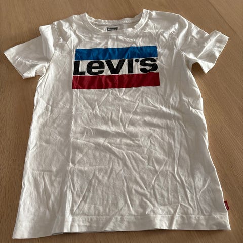 Levi's T-shirt för flickor i storlek 140. Tillverkad i bomull och har en vit färg med Levis logotyp i rött, blått och svart på framsidan.