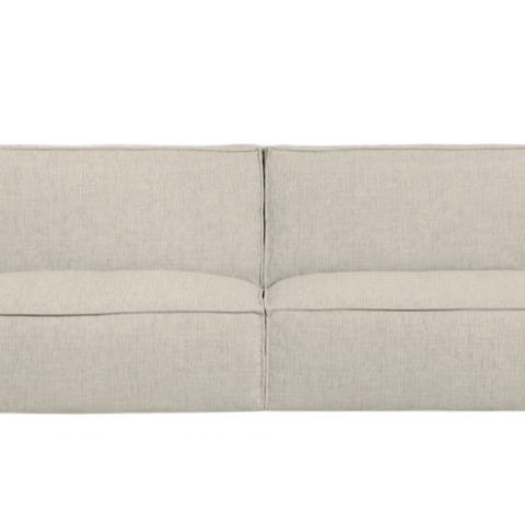 Mörkgrå tygsoffa med djup sits och raka armstöd. Består av två sektioner som står stabilt ihop. Soffan är använd men fortfarande i bra skick.