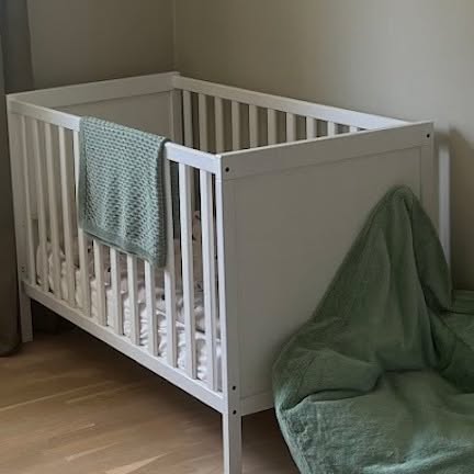 Säljer en vit SUNDVIK spjälsäng från Ikea.