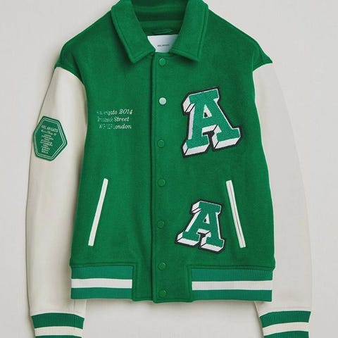 Axel Arigato jacka i beige färg, tillverkad i ullmaterial. Herrstorlek L. Jackan har en knappstängning framtill och detaljer i kontrasterande färg på ärmarna.
