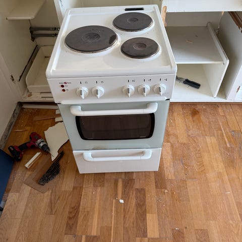 En fungerande ugn med spis från Electrolux (modellbeteckning syns i bilden) bortskänkes pga köksrenovering. Handtaget har gått i sönder annars inget fel med den.