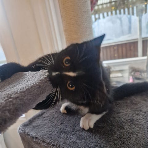Vår katt söker ett nytt hem. Han är snäll, god, väldigt mycket och är kelig.