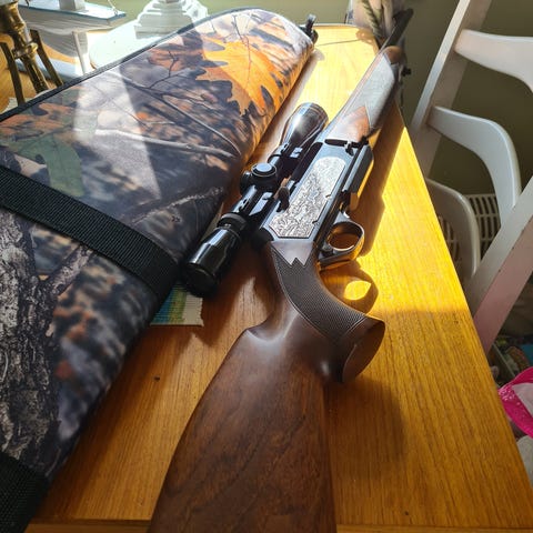 Begagnad Browning Bar Match från 2023, gått ca 500 patroner. Kortad till 46 cm och gängad M18x1. Ingår Plastkoffert, varbygellås med kodlås, 2 st bakkappor i gummi, lång och kort, 2 st kolvhöjare i gummi. 1 st magasin.