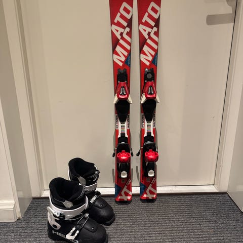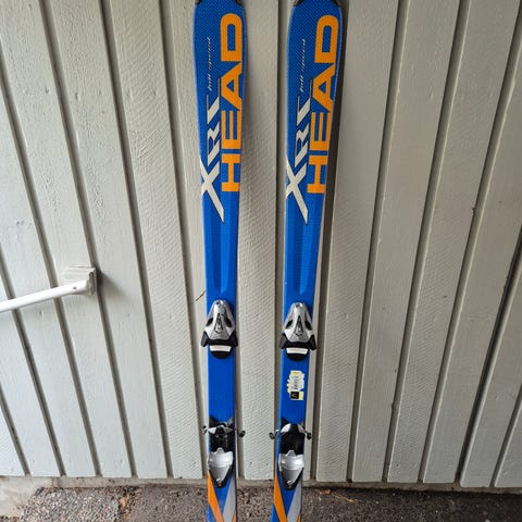Carvingskidor och pjäxor från Head. Bindningarna är inställda efter pjäxornas storlek. Endast ytliga repor.