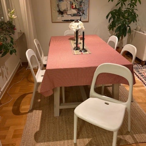 Vit stadig stol med armstöd från Ikea men ser inte ut att vara kvar i sortiment.