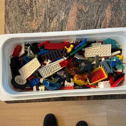 Kartong med LEGO och blandade byggsatser