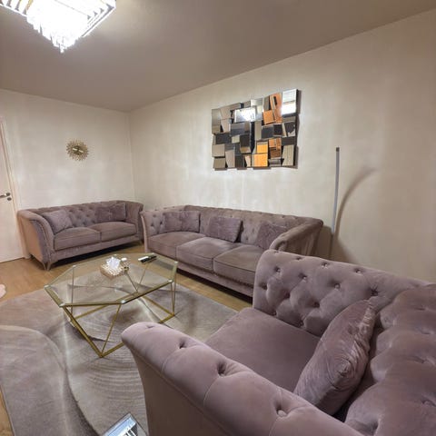 Stor grå hörnsoffa i använt skick.perfekt för vardagsrummet.