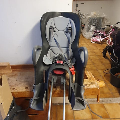 Cykel stol till barn i bra skick med montering bas och bra säkerhet bälte , finns i Västerås .