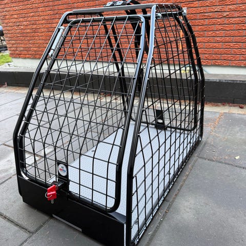 Small med lasttröskel för bil med nedsänkt koffert. Men fungerar såklart i bil utan också. Kolla på artfex hemsida för att se vilken bur som passar din bil.