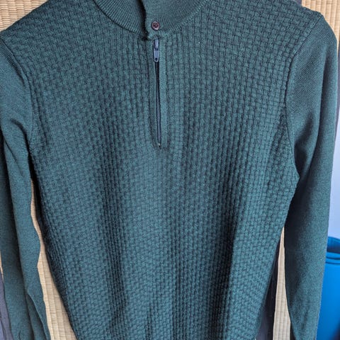 Det här är en 1/2 zip tröja från det exklusiva varumärket Baldini som är känt för sin fina kvalité. Tröjan är i fint skick och den är varm.