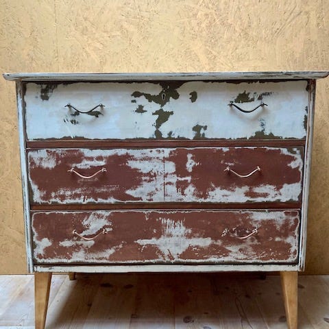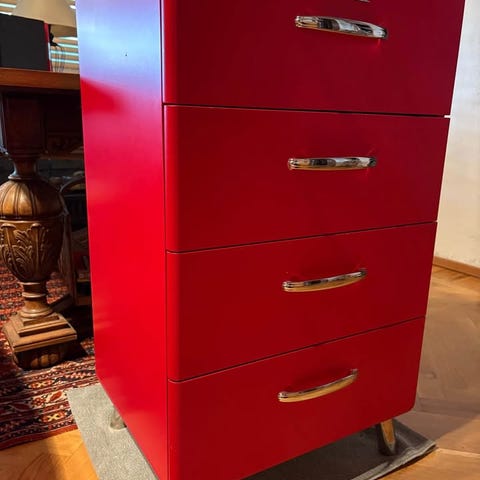 Säljer en tung och gedigen byrå med 4 lådor i gulvit, designad av Tomas Jelinek för IKEA på 1990-talet.