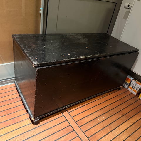 En gammal kista som är i bra skick och perfekt att använda för förvaring.