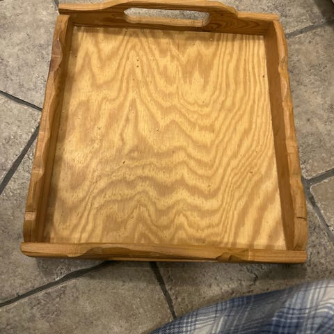 Trä bricka säljes varsamt använd.