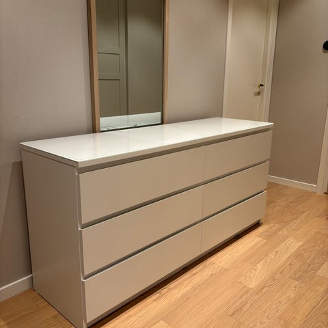 Säljer en IKEA Malm byrå med 6 lådor, 160 cm bred. En stilren och mycket rymlig byrå med gott om förvaring. Perfekt i sovrum, hall eller klädkammare.