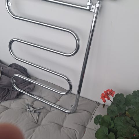 Handdukstork i rostfritt stål. Passar för uppvärmning och torkning av handdukar i badrum. Monteras på vägg och drivs elektriskt.