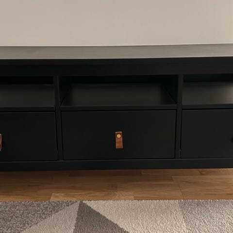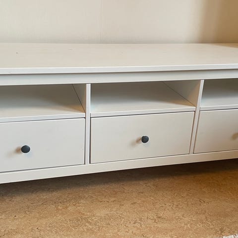 Ikeas Hemnes TV-bänk. Lite färgskav på ena benet, annars i fint skick! Nypris 2795 kr