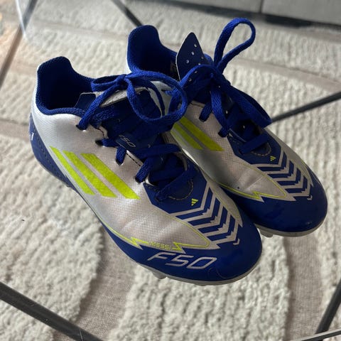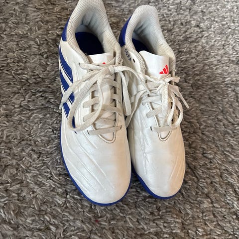 Adidas inomhusskor i blått och vitt, storlek 41 1/3.