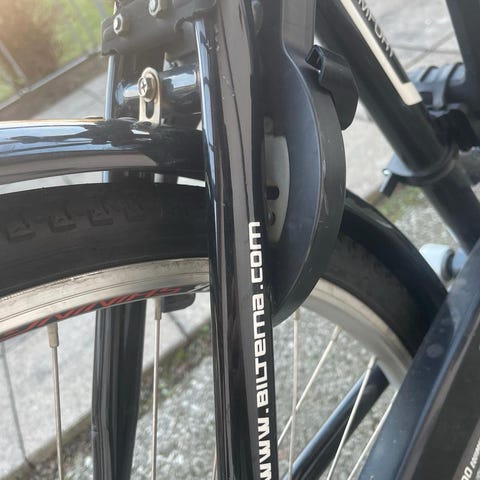 Blå cykel i storlek 28. Cykeln är utrustad med en korg framtill och pakethållare bak. Har inga dolda fel, fungerar som den ska.