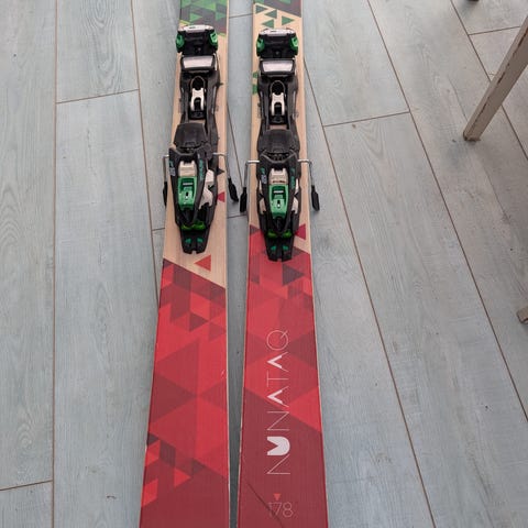 Fina topptursskidor. Nyslipade och nya beläggningar, 139-107-125 cm med original skins till modellen. Bindningar, Marker King Pin. Klara att kasta sig ut i puder med :)