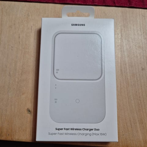 Säljer en helt ny och oöppnad trådlös laddningsplatta från Samsung. Perfekt för dig som vill ladda flera enheter snabbt och trådlöst.