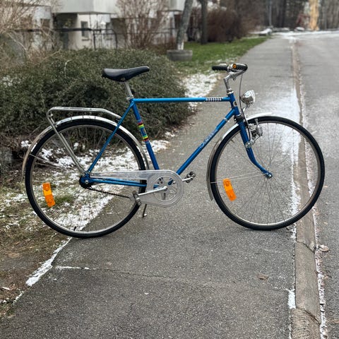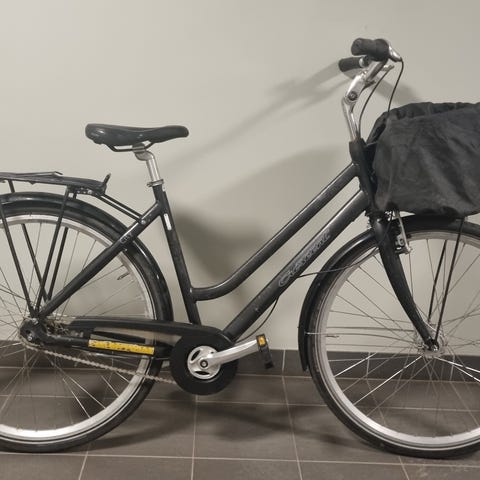 Crescent stadscykel i grön färg. Cykeln är designad för stadscykling och har en klassisk ramform som underlättar på- och avstigning. Utrustad med standardkomponenter anpassade för bekväm pendling i stadsmiljö. Den har 7st nav växlar och fotbroms samt frambroms på styre