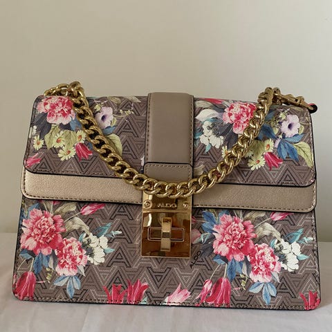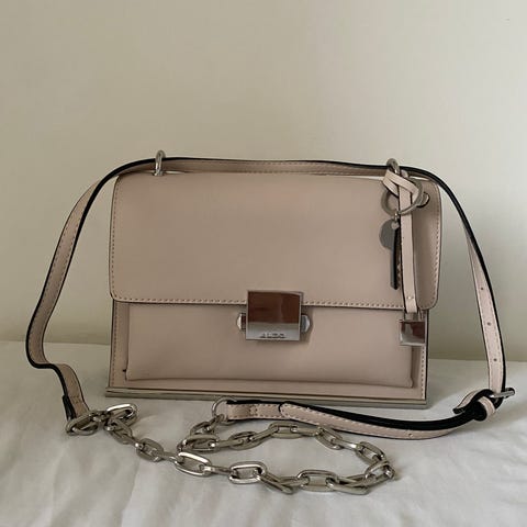 Elegant handväska från ALDO med justerbar axelrem. Väskan har detaljer i svart och beige , samt ett rymligt fack med flera mindre fickor inuti. Bära den med en kavaj och byxor för presentationer, eller släng den över helgstickat och jeans för att få till ett helhetsintryck.