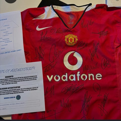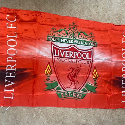 Manchester United flagga med klubbens emblem i rött, gult och svart. Passar för fans och samlare som vill visa sitt stöd för laget.