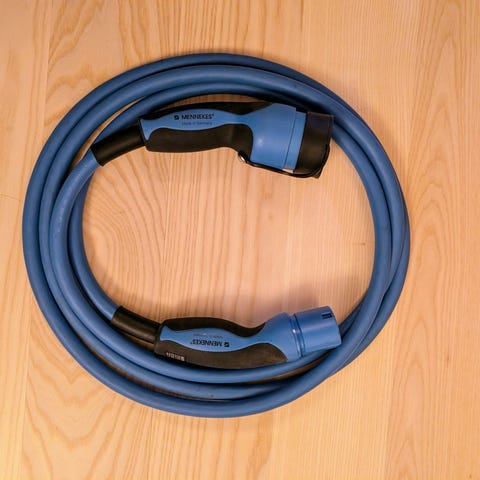 Mennekes laddkabel, 4 meter lång för max 480 voltoch 20 A 2, 3-fas vilket ger upp till ~14 kW laddning på vanliga 400 V 3-fas
