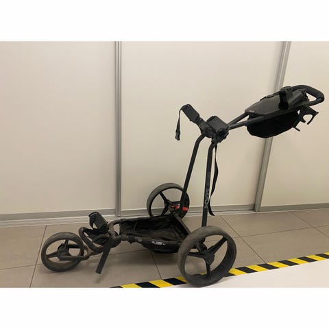 Big Max Blade IP golfvagn i svart färg. Har tre hjul och är designad för att underlätta transport av golfbag på golfbanan. Lätt att fälla ihop, tar liten plats hopfälld. Med en vikt på 6,2 kg och en hopfälld storlek på 88 x 62 x 12,5 cm är Blade IP lätt att transportera och förvara, vilket gör den till en idealisk följeslagare för golfare som söker både funktionalitet och stil. Finns en väska att förvara den i också säljes separat.