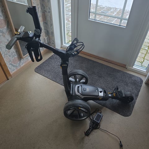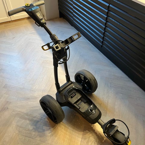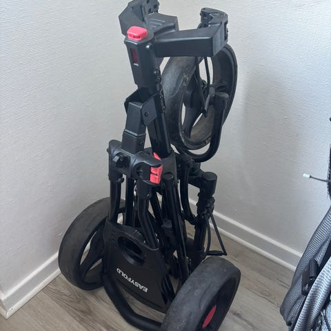 Big Max Blade IP golfvagn i svart färg. Har tre hjul och är designad för att underlätta transport av golfbag på golfbanan. Lätt att fälla ihop, tar liten plats hopfälld. Med en vikt på 6,2 kg och en hopfälld storlek på 88 x 62 x 12,5 cm är Blade IP lätt att transportera och förvara, vilket gör den till en idealisk följeslagare för golfare som söker både funktionalitet och stil.