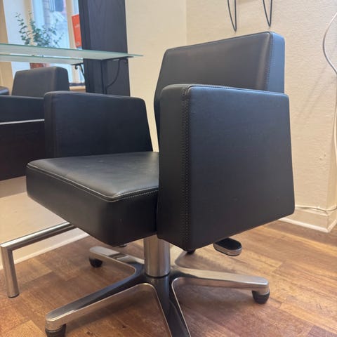 5 stolar som är svart och skinn