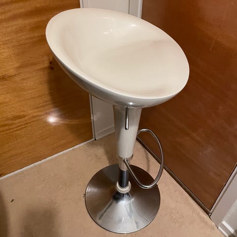 Säljer 2 st snygga och bekväma barstolar i vit sits med träben och svarta metallstag.– tidlös design som funkar i de flesta hem. Lätta att torka av och flytta runt.