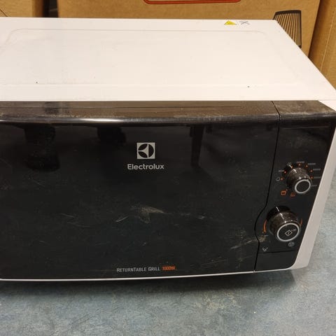 Logik mikrovågsugn i svart färg. Utrustad med digital display och flera kontrollknappar på sidan för olika funktioner. Inre utrymme med roterande tallrik för jämn uppvärmning.