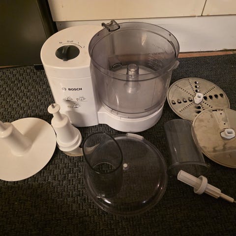 Tror att den är från Rusta. Inte jättemycket använd men blivit lite gul vid handtaget. 2 olika hastigheter och en "puls" funktion.