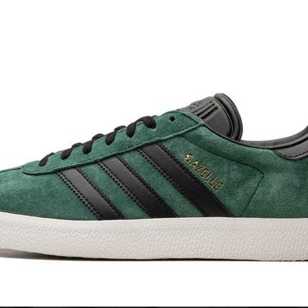 Adidas Gazelle sneakers i storlek 44. Skorna har en blå färg med vita detaljer och är tillverkade i syntetmaterial. Designen är klassisk med tre vita ränder på sidan. Passar för vardagligt bruk.