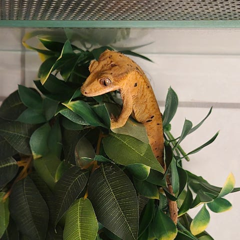 Ögonfransgecko. 0.0.1. Lilly White. 50% Het Axanthic. Tror den blir Solid Back som sin mamma. 1500kr.