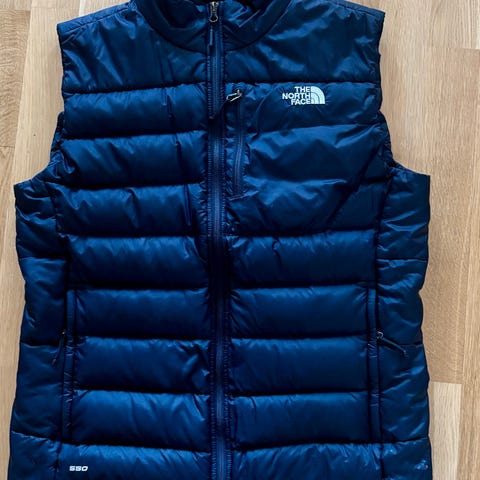 The North Face Väst i storlek M för dam. Västen är svart och tillverkad av dunmaterial.