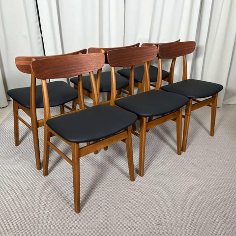 Set om 10 st eleganta Farstrup stolar i teak, Danmark. 50-tal / 60-tal