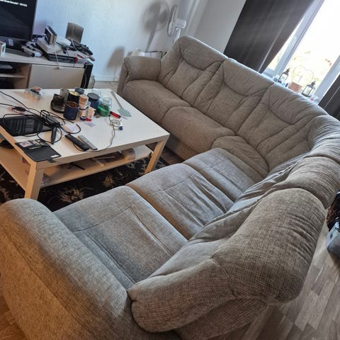 Grå divan soffa måste hämtas senast 25:e december innan 12:00 då våran nya soffa kom tidigare än väntat.