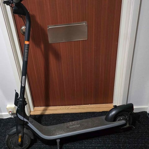 Segway Ninebot Elscooter i svart färg. Elektrisk scooter för persontransport med handtag och hjul. Designad för att röra sig snabbt i enstadsmiljö.