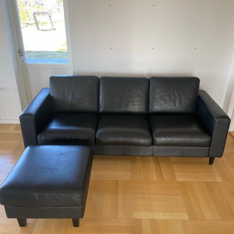 Ilva soffa i brun läderklädsel. Sandvik