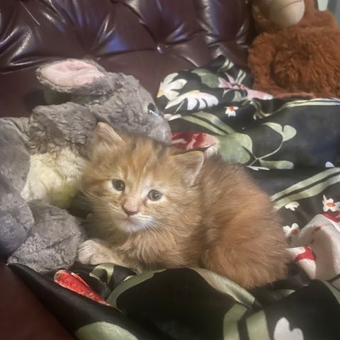 Mamman är renrasig main coon med stamtavla. Världens mysigaste familjekatt och bästa råttjägaren som finns.