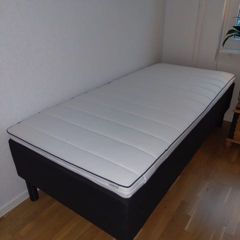 Varje säng är 90x200cm. 1 år gamla, fräscha madrasser utan fläckar. Finns i Skoghall och hämtas snarast möjligt. Först att hämta får köpa.
